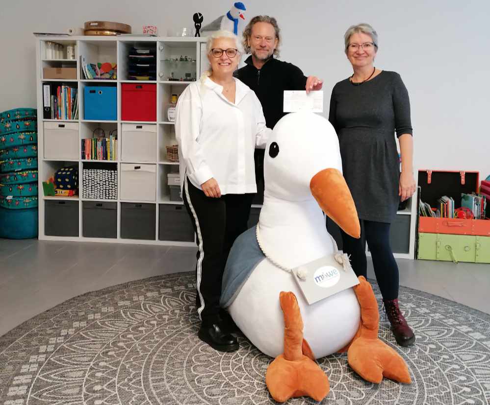 Auf dem Bild zu sehen: Anita und Frank Distelkamp von der D:INO Stiftung sowie Beate Schwedler von der MÖWE.