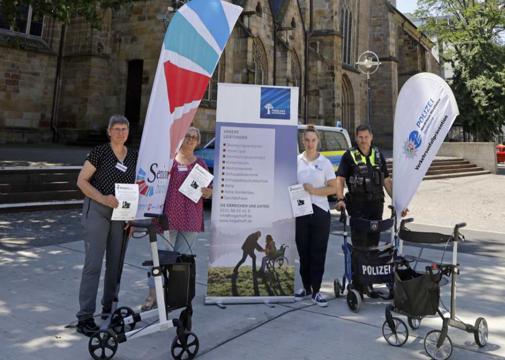 Um in Dortmund mobil zu sein, bieten die öffentlichen Verkehrsmittel eine gute Alternative zum Auto. Damit diese auch mit dem Rollator sicher genutzt werden können, lädt das Seniorenbüro Innenstadt-West zur Veranstaltung „Sicher unterwegs mit dem Rollator“ am Pylonen an der Reinoldikirche ein. Geübt wird gemeinsam mit Herrn Ralf Becker von der Mobilitätsberatung von DSW21 in Ruhe und direkt in einem Bus, wie man am besten ein- und aussteigt und wie man sich verhält, wenn der Bus plötzlich losfährt oder bremst. Als zusätzliches Angebot kann man auf dem Übungsparcours der Verkehrsprävention der Polizei Dortmund erfahren, wie man sich mit dem Rollator sicher auf unterschiedlichen Untergründen bewegt. Außerdem besteht die Möglichkeit, die Einstellung des Rollators durch das Sanitätshaus Tingelhoff überprüfen zu lassen.