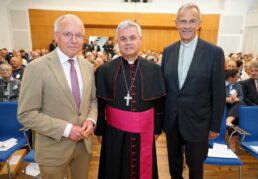 Das Bild zeigt von links: Festredner Prof. Dr. Dr. Karl-Rudolf Korte, Erzbischof Dr. Udo Markus Bentz und Prälat Dr. Peter Klasvogt.