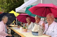 Auf dem Huckarder Marktplatz war alles für das gemeinsame Singen „Huckarde singt – gemeinsam“ vorbereitet: Pavillons standen, der Grill war angeheizt, die Band „Pottblagen“ bereit, Schüler:innen des Bert-Brecht-Gymnasiums hatten Kuchen zum Verkauf organisiert und zahlreiche Besucher:innen fanden sich trotz dunkler Wolken ein. Um 15 Uhr eröffnete Benedikt Gillich von der Initiative Begegnung VorOrt Huckarde die Veranstaltung und übergab das Wort an die Band, die mit dem Lied „It never rains in sunny California“ startete. Doch bereits beim ersten Mitsing-Song „Aber bitte mit Sahne“ zog ein starkes Gewitter auf. Aus Sicherheitsgründen musste die Veranstaltung nach weniger als zehn Minuten abgebrochen werden. Helfer:innen hielten Pavillons fest, sammelten Deko ein und wurden ebenso wie die Gäste völlig durchnässt. Die Grillmeister ließen sich vom Unwetter nicht beirren und grillten weiter – mit dem Hinweis, dass Regen zwar erwartet wurde, aber nicht in dieser Intensität. Trotz des Abbruchs kamen erfreulicherweise viele Spenden zusammen, die vollständig der Abikasse der beteiligten Schüler:innen zugutekamen. Ein besonderer Dank gilt allen Helfer:innen, die beim Aufbau, der Wertmarkenausgabe, am Grill, beim Abbau oder beim Unterstützen älterer Besucher:innen im Regen halfen. Auch wenn die Veranstaltung buchstäblich ins Wasser fiel, zeigte sie das starke Engagement im Stadtteil. Veranstalter Benedikt Gillich kündigte an: „Wir kommen wieder! Und im nächsten Jahr dann unter dem Motto ‚Aber bitte mit Sonne‘.“