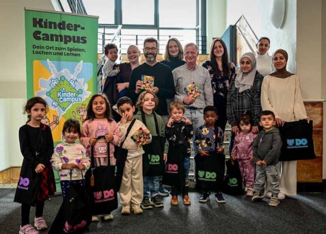 Am Mittwoch, 10. September, gab es im Foyer des Fachbereichs Schule eine symbolische Übergabe, von der beide KinderCampus-Standorte profitieren: Westerfilde & Bodelschwingh sowie Hörde-Clarenberg.