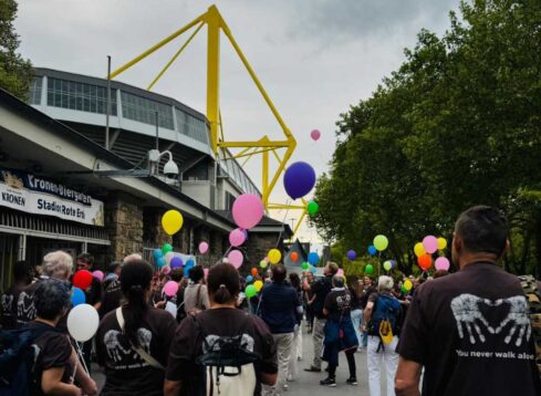 Zum zweiten Mal organisierte die hämatologische Station G5 des St. Johannes Hospitals Dortmund die Veranstaltung „You Never Walk Alone“ mit Nadine Vollmer-Grim und Peggy Baltrusch. Rund 100 ehemalige und aktuelle Patient:innen, Angehörige sowie Mitarbeitende starteten vom Stadion Rote Erde zu einer drei Kilometer langen symbolischen Wanderung zurück zum Hospital, mit dem Ziel, Hoffnung zu vermitteln, Begegnungen zu ermöglichen und den Gemeinschaftsgedanken zu stärken. Die Veranstaltung begann mit einer Begrüßungszeremonie, bei der auch den Verstorbenen gedacht wurde, symbolisiert durch das Freilassen vieler bunter Luftballons. Während der Wanderung begleiteten Live-Musik der Künstler:innen Tialda und Sascha Salvati sowie eine Erfrischung durch den Kuhbar-Eissprinter die Teilnehmenden. Nach der Ankunft im St. Johannes Hospital wurde der Tag im Panoramacafé bei einem gemeinsamen Beisammensein fortgesetzt, wo alle Teilnehmenden einen bemalten Glücksstein erhielten, gestaltet von der Froschklasse 4A der Annaschule Aachen. Die Veranstaltung wurde vom Team der Station G5 mit Unterstützung von Mitarbeitenden aus Service, Küche und weiteren Bereichen des Krankenhauses organisiert, außerdem stellte das Taxiunternehmen Wiesemann einen kostenlosen Shuttleservice für weniger belastbare Patient:innen bereit. Die Rückmeldungen waren durchweg positiv, viele hoben die Bedeutung des Tages als Möglichkeit zum Wiedersehen, Austausch und Zeichen der Dankbarkeit hervor. Das St. Johannes Hospital möchte mit dieser Aktion zeigen, dass die Arbeit der Station über die medizinische Versorgung hinausgeht und Patient:innen Mut sowie ein Gefühl des Zusammenhalts vermitteln soll.