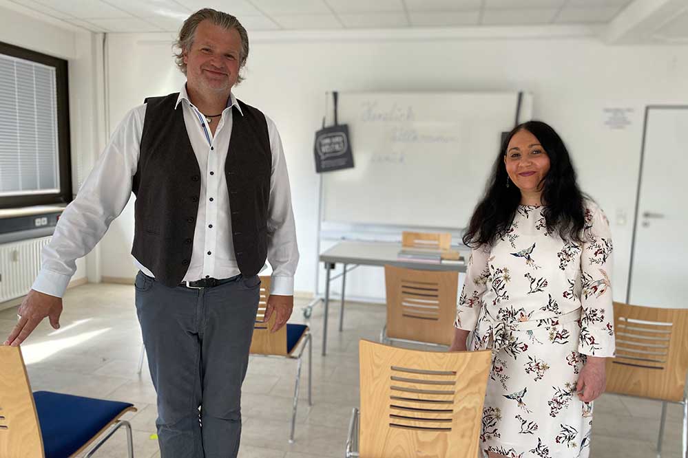 Bildzeile: Die Doppelspitze des Bildungswerks Multi Kulti, Rüdiger Szymkowiak und Iva Majewski-Kolarova, freuen sich auf das neue Semester.