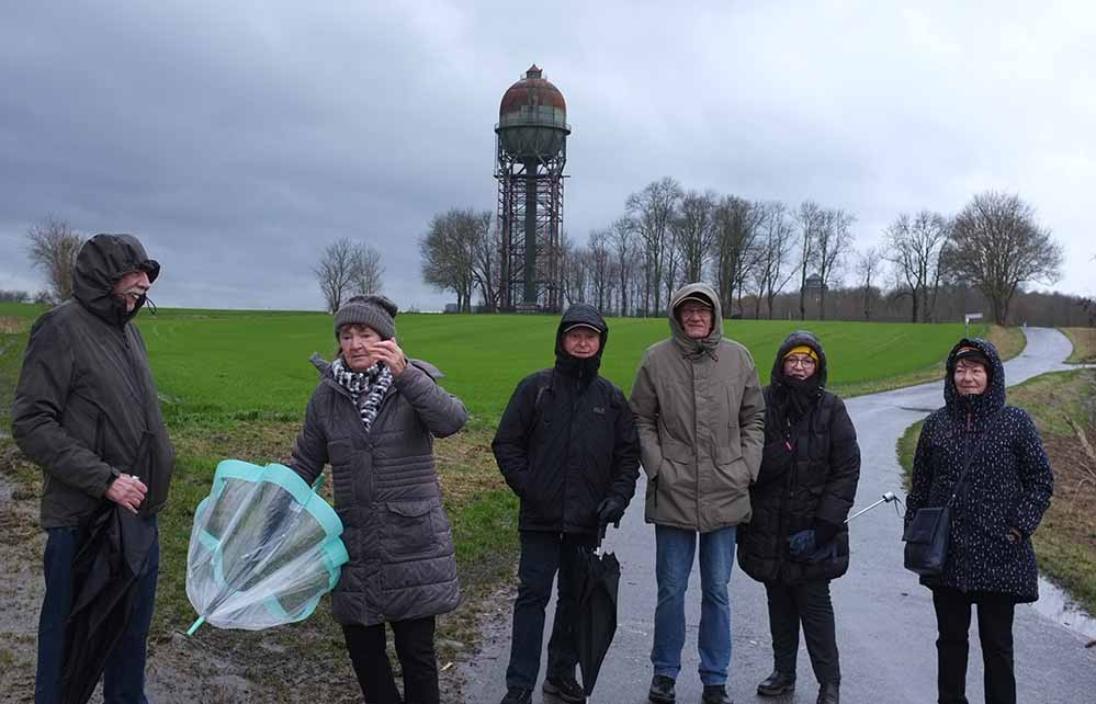 Zur kleinen Wandertour in Lanstrop starteten trotz des Wetters 17 entschlossenen Frauen und Männer, nach dem Rundgang durchs Dorf nahmen bereits elf in der Gaststätte des Kleingartenvereins „Auf der Lauke“ Platz, während der Rest noch zum Wasserturm ging und anschließend an den See. Wie schon beim ersten geplanten, dann aber verschobenen Spaziergang vor zwei Wochen, war das Wetter eine echte Herausforderung. Bei der anschließenden Einkehr in der Kleingartengaststätte vergaßen alle Regen und Kälte. Der zweite Termin für die Nachholwanderung rund um den Lanstroper See und die begrünte Halde hat Begegnung VorOrt für Sonntag, 13. März, vorgesehen. Auch dafür haben sich schon viele Teilnehmer*innen angemeldet, einige können noch dazu kommen. Start ist um 13 Uhr an der Schafstallstraße am Eingang der Kleingartenanlage „Auf der Lauke“. Die Strecke ist etwa sieben Kilometer lang. Eine Anmeldung ist notwendig. Die nimmt Susanne Schulte von Begegnung VorOrt an, Telefon 0231/9934-320.
