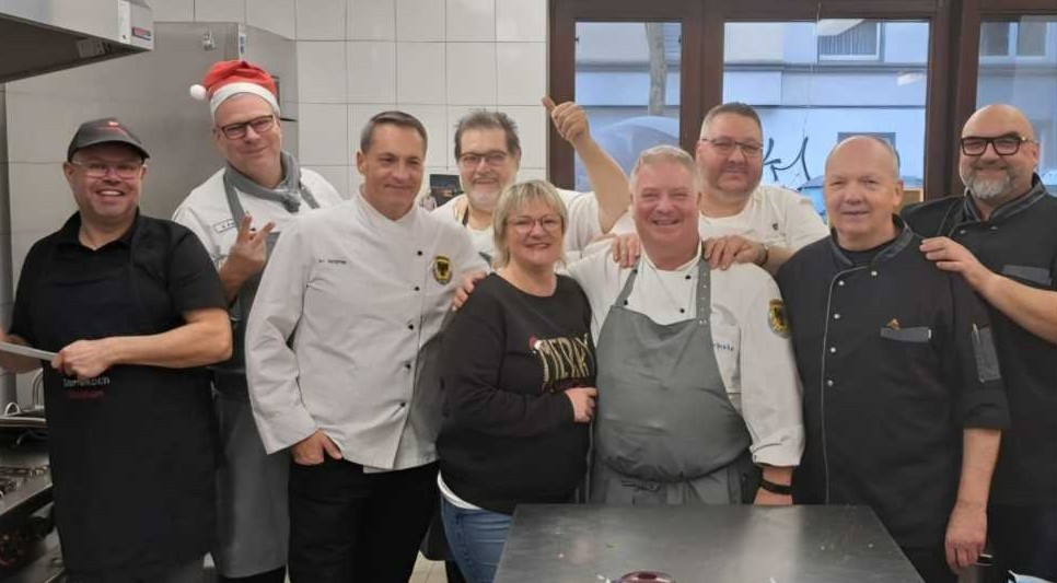 Am Nikolaustag besuchte der Club der Köche Dortmund e.V. mit zwölf Berufskollegen aus der Dortmunder Gastronomie die Kana-Suppenküche und bereitete dort ein festliches Essen für bedürftige Dortmunder Bürger:innen zu. Die Köche kochten, richteten an und servierten 300 Portionen Putengulasch mit Apfelrotkohl und Knöpfle sowie Bratapfel-Mousse mit Dessertkirschen und Waffelherzen als Dessert. Ihr Anliegen war es, den Gästen ein schönes Menü und einen entspannten Aufenthalt zu schenken.
