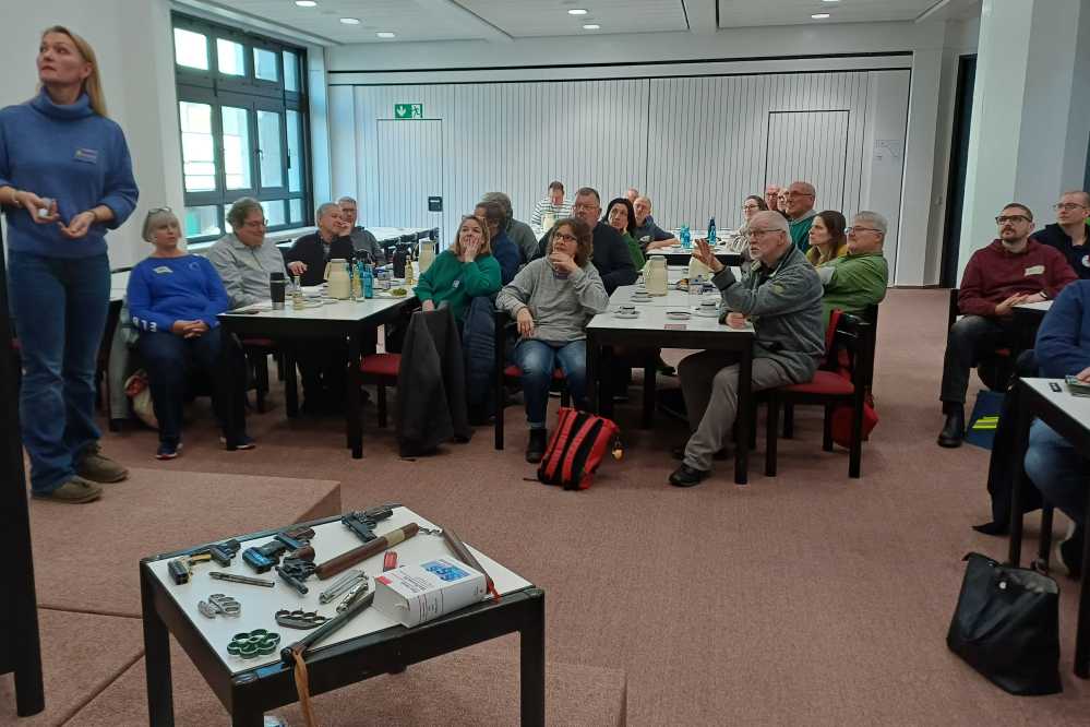 Um Waffengewalt und die sich dabei ergebenden Herausforderungen bei Einsätzen der psychosozialen Notfallversorgung ging es bei einem Fortbildungstag, zu dem die Ökumenische Notfallseelsorge Dortmund eingeladen hatte. Gemeinsam mit Vertretern der Polizei, der Feuerwehr, der Rettungsdienste und Notärzte wurde die Thematik im katholischen Zentrum bei der Ganztagsveranstaltung ausführlich behandelt. Susan Conteddu von der Dortmunder Polizei präsentierte dabei die bei Gewalttaten vielfach benutzten Waffen und thematisierte die Konsequenzen bei Einsätzen der Notfallseelsorge. David Kaim von der Feuerwehr Dortmund widmete sich bei seinem Vortrag den besonderen Lagen im Rettungsdienst, die durch Amok und Terror verursacht werden, während der Notarzt Roshan Mamarvar (Kath. St. Paulus-Gesellschaft) die durch Waffen verursachten Verletzungen vor Augen führte.