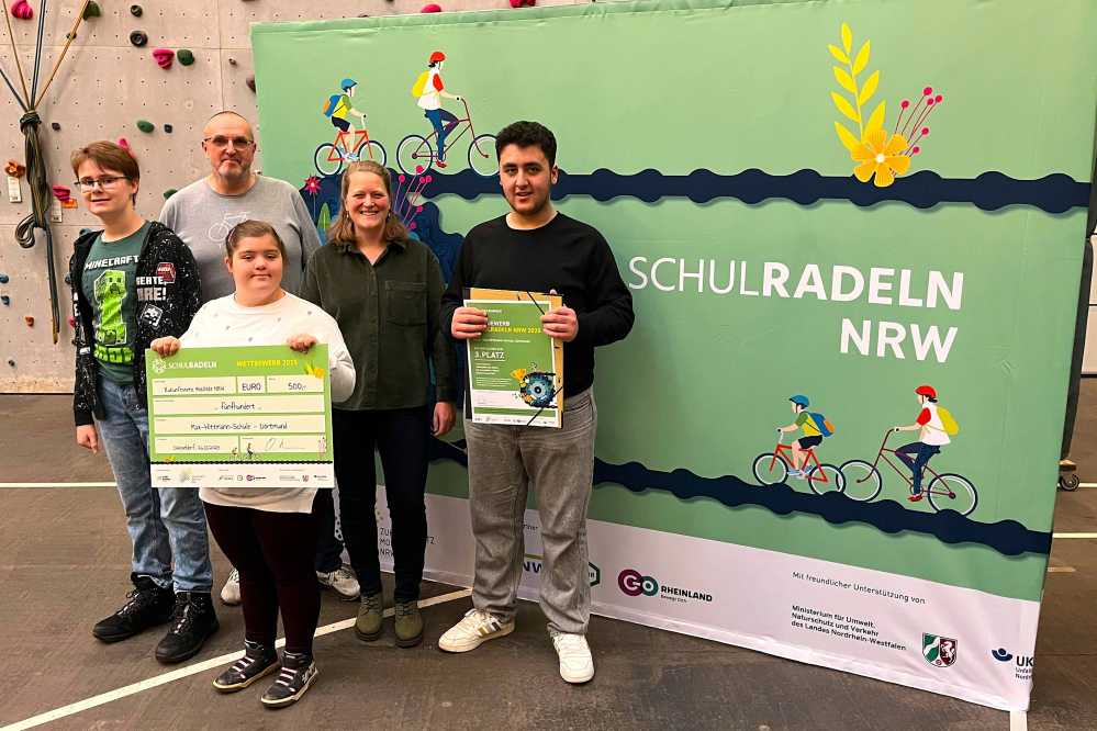 Die Max-Wittmann-Schule in Eving erzielte beim landesweiten Wettbewerb Schulradeln NRW einen Spitzenplatz und ist damit erstmals eine Dortmunder Schule unter den Top 3. Bereits im Juni war sie als stadtweit beste Förderschule beim Stadtradeln 2025 ausgezeichnet worden. Bei der Preisverleihung in den Abenteuerhallen Köln-Kalk überreichte Staatssekretär Viktor Haase vor rund 100 Gästen die Urkunden und Preise; für die Schule nahmen die Schülerinnen und Schüler Kian, Renas und Esin stellvertretend entgegen. Lehrerin Maren Becker betont die hohe Motivation im Kollegium und bei den Schulbegleiterinnen, die gemeinsam viele Kilometer gesammelt haben. Schulleiter Torsten Sundermann erklärt, dass Alltagsmobilität ohne Auto für die Förderschule mit Schwerpunkt Geistige Entwicklung ein wichtiges Thema sei. Die Schülerinnen und Schüler lernen hier den Umgang mit Bus und Bahn und trainierten während des Wettbewerbs regelmäßig auf dem Rad um den Teich hinter der Schule, um Kilometer für das Schulradeln zu sammeln. Das Schulradeln NRW, angelehnt an das jährliche Stadtradeln des Netzwerks Klima-Bündnis Services, fördert klimafreundliche Mobilität und ermöglicht Schülerinnen, Schülern, Lehrkräften und Familien, möglichst viele umweltfreundliche Kilometer zu sammeln. STADTRADELN-Koordinator Hendrik Konietzny begleitete die Max-Wittmann-Schule zur Preisverleihung und gratulierte zur Platzierung.