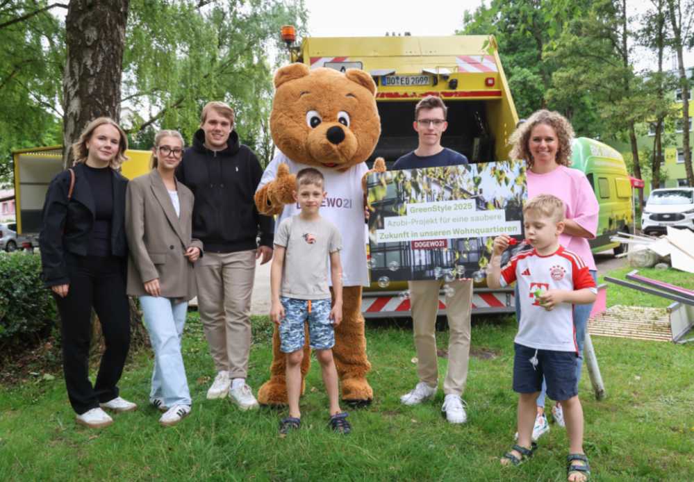 Für die Auszubildenden des kommunalen Wohnungsunternehmens DOGEWO21 war der gemeinsame Einsatz mit der EDG ein voller Erfolg: Sie organisierten einen mobilen Recyclinghof für die Mieterschaft rund um die Geßlerstraße. Vor Ort konnten Mieter:innen der DOGEWO21-Häuser Wertstoffe wie Alttextilien und Altmetall sowie Sperrmüll und Elektroschrott bequem und umweltfreundlich gegen eine geringe Gebühr entsorgen. Insgesamt kamen rund acht Tonnen Sperrmüll und Elektroschrott zusammen, darunter Fahrräder und Waschmaschinen. Begleitet wurde die Aktion von einem Infostand der DOGEWO21-Auszubildenden und dem Infomobil der EDG, dessen Mitarbeitende Fragen zur Abfallentsorgung beantworteten. Während die Erwachsenen Keller und Wohnungen entrümpelten, konnten Kinder mit Handschuhen und Müllzangen das Quartier vom Müll befreien. Wer einen gefüllten Müllbeutel abgab, erhielt kleine Geschenke vom Maskottchen Dogibär. Die mobile Sperrmüllentsorgung war Teil des Azubi-Projekts GreenStyle, bei dem die Auszubildenden Maßnahmen zur Müllvermeidung und zur korrekten Entsorgung in den DOGEWO21-Quartieren entwickeln. Ziel ist es, die Wohnquartiere sauberer, nachhaltiger und lebenswerter zu gestalten, das Bewusstsein für Mülltrennung zu fördern und durch die Vermeidung von Sonderleerungen langfristig die Betriebskosten zu senken. Im Oktober wird die Aktion in einem weiteren Wohnquartier fortgesetzt.