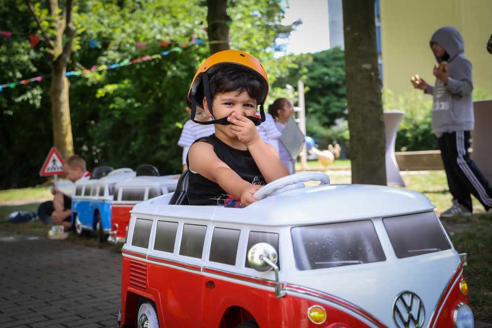 Anlässlich der Sommerferien veranstaltete der DOGEWO21-ExtraPlatz ein großes Kinderfest in der Praebau-Siedlung in Mengede und sorgte damit für Freude bei Jung und Alt. Über vier Stunden lang herrschte auf der Grünfläche zwischen Burgring und Goslarstraße eine fröhliche Stimmung voller Spiel, Spaß und Gemeinschaft. Das „School’s out“ Kinderfest bot zahlreiche Aktivitäten wie Hüpfburg, Seifenblasen, Kinderschminken, Mini-Busfahrten, Torwandschießen und ein Glücksrad mit Preisen wie Gummibärchen, Malbüchern und Schlüsselbändern. Während die Kinder spielten, konnten sich Eltern und Großeltern entspannen und das Geschehen verfolgen. Für das leibliche Wohl sorgten Kaffee, Waffeln am Spieß, Eis vom Hitzefrei-Eisfahrrad sowie Würstchen vom Grill. Das Wasser-Mobil von DEW21 verteilte kostenlos mit frischem Obst aromatisiertes Wasser. Auch das DOGEWO21-Maskottchen Dogibär war vor Ort, spielte mit den Kindern und posierte für Erinnerungsfotos. Rund 250 Mieter:innen des kommunalen Wohnungsunternehmens DOGEWO21 nahmen an dem Fest teil. Die Mitarbeiterinnen des ExtraPlatzes und die Besucher:innen zeigten sich begeistert vom gelungenen Tag und freuen sich bereits auf weitere gemeinsame Veranstaltungen im Quartier.