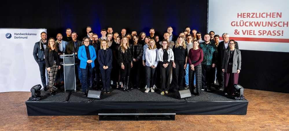 40 Junghandwerker:innen aus dem Kammerbezirk der Handwerkskammer Dortmund wurden für ihre Spitzenleistungen bei der „Deutschen Meisterschaft im Handwerk – German Craft Skills“ 2025 geehrt. Die Auszeichnung auf Kammerebene fand Ende Januar im Bildungszentrum Hansemann in Dortmund vor rund 100 Gästen statt. Die erfolgreichen Teilnehmenden stammen aus zahlreichen Städten und Kommunen und haben ihre Ausbildung im Bezirk der HWK Dortmund absolviert. Ermittelt wurden die Sieger:innen anhand praktischer Prüfungen, insgesamt 18 Frauen und 22 Männer. 23 von ihnen erzielten zusätzlich herausragende Platzierungen auf Landesebene, darunter fünf dritte, neun zweite und neun erste Plätze. Auf Bundesebene erreichten drei Nachwuchshandwerker:innen Spitzenplatzierungen: Fotografin Nina Kovacevic aus Geseke und Rollladen- und Sonnenschutzmechatroniker Timo Stromberg aus Hamm wurden Bundessieger:innen, Raumausstatterin Leonie Seringhaus aus Ense erreichte den zweiten Platz. HWK-Vizepräsidentin Kerstin Feix und Hauptgeschäftsführer Carsten Harder würdigten die Leistungen als Beleg für die hohe Qualität der Ausbildung im Kammerbezirk Dortmund und betonten die Bedeutung des Engagements und der Leidenschaft der Nachwuchskräfte für die Zukunft des Handwerks.