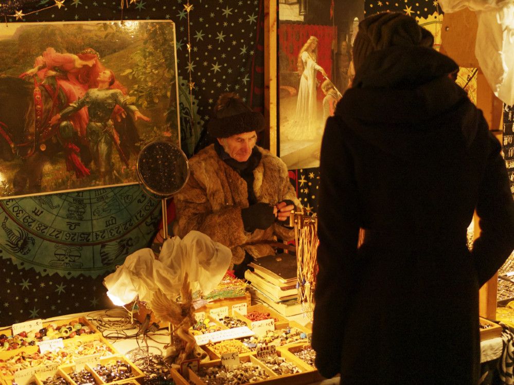 Dazwischen wuseln sie herum, die Gestalten, ohne die kein MPS oder Lichterweihnachtsmarkt zu denken wäre: Der Tod begrüßt die Gäste mit quietschender Stimme, schwarzem Humor und Nikolausmütze, Bruder Rectus‘ Bariton erzählt Geschichten und Märchen und der Hässliche Hans erschreckt mit schnoddrigem Geplapper Kinder wie Erwachsene gleichermaßen in der kalten Nacht.