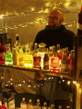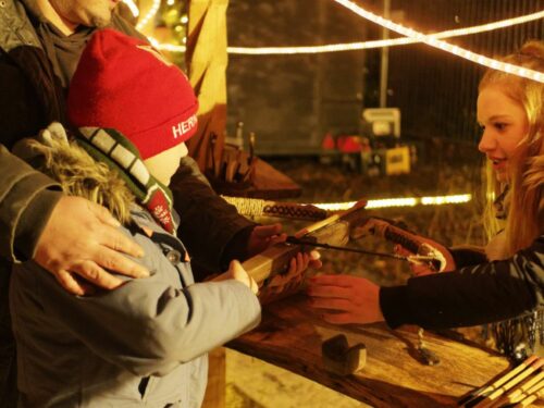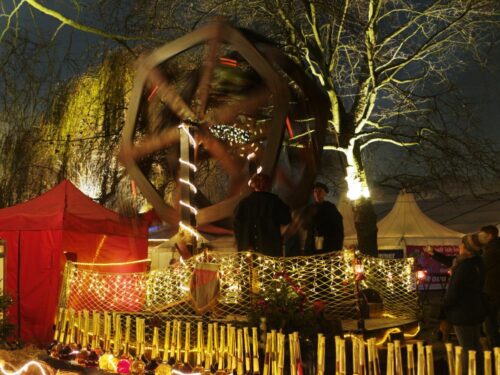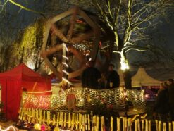 Niemand muss sich aber Sorgen um die Verpflegung machen, es sind ausreichend Getränkebuden und Imbissstände auf dem Festivalgelände verteilt. Festival, das ist ein Begriff, der erst einmal nicht so richtig zu einem Weihnachtsmarkt passen will. Doch die mittelalterlichen Klänge von Trommeln und Dudelsack, Pfeifen und Lauten, die durch den Park wehen, lassen keinen Zweifel daran, dass hier eine große Party gefeiert wird.