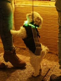 Hundebesitzer können sich ebenfalls freuen: Das ganze Team des Lichter-Weihnachtsmarks ist ungemein tier- und insbesondere hundefreundlich. Deshalb sind auch Hunde gern gesehene Gäste auf dem Markt, aber bitte an der Leine zu führen. An vielen Stellen stehen Trinknäpfe zur Verfügung und es darf selbstverständlich Hundeverpflegung mitgebracht werden.