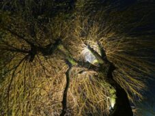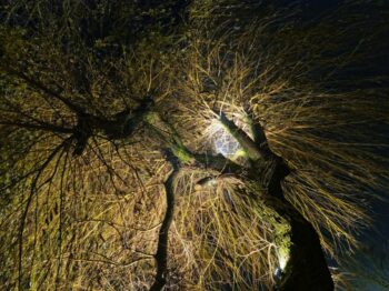Es ist kalt an diesem Abend im Fredenbaumpark. Der Hochnebel wirkt glühend, bestrahlt von tausenden Strahlern, Fackeln, Feuern und den Lichterketten der über hundert Hütten. Er hüllt den Phantastischen Lichter Weihnachtsmarkt in ein zartes Tuch aus farbigen Dunstschleiern, es fühlt sich alles an, wie in Watte gepackt. Das haucht den liebevoll gestalteten Traumwelten magisches Leben ein.