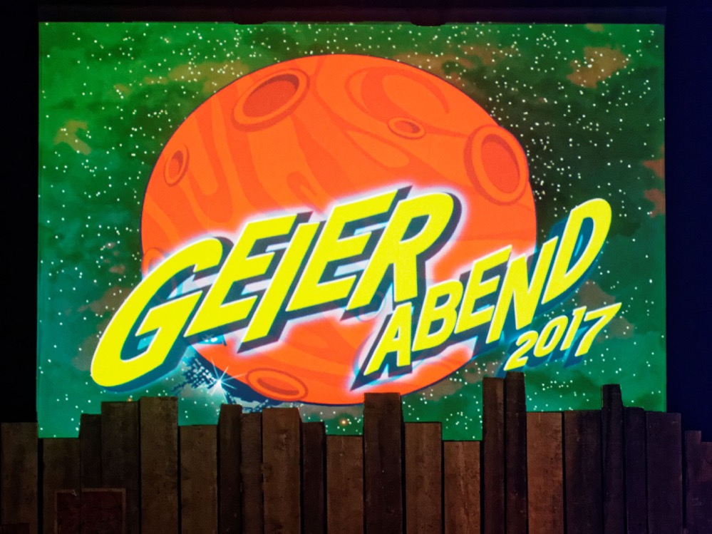 „Datt heißt nich Salz-Kümmel-Brötchen, datt isn Salzkuchen, Du Heijo! Obwohl innen Salzkuchen ja ’n Loch inne Mitte is, und hier nich. Is vielleicht doch ’n Brötchen. Na Hauptsache Mett, ne?“ Was wie eine Szene aus dem Programm des neuen Geierabends 2017 wirkt ist tatsächlich Realsatire: Das unbeabsichtigte Vorprogramm findet schon in der Lohnhalle statt, zwischen Currywurst und Ofenkartoffel. Man merkt schnell dass es heute hier schlägt, das Herz des Ruhrgebiets.