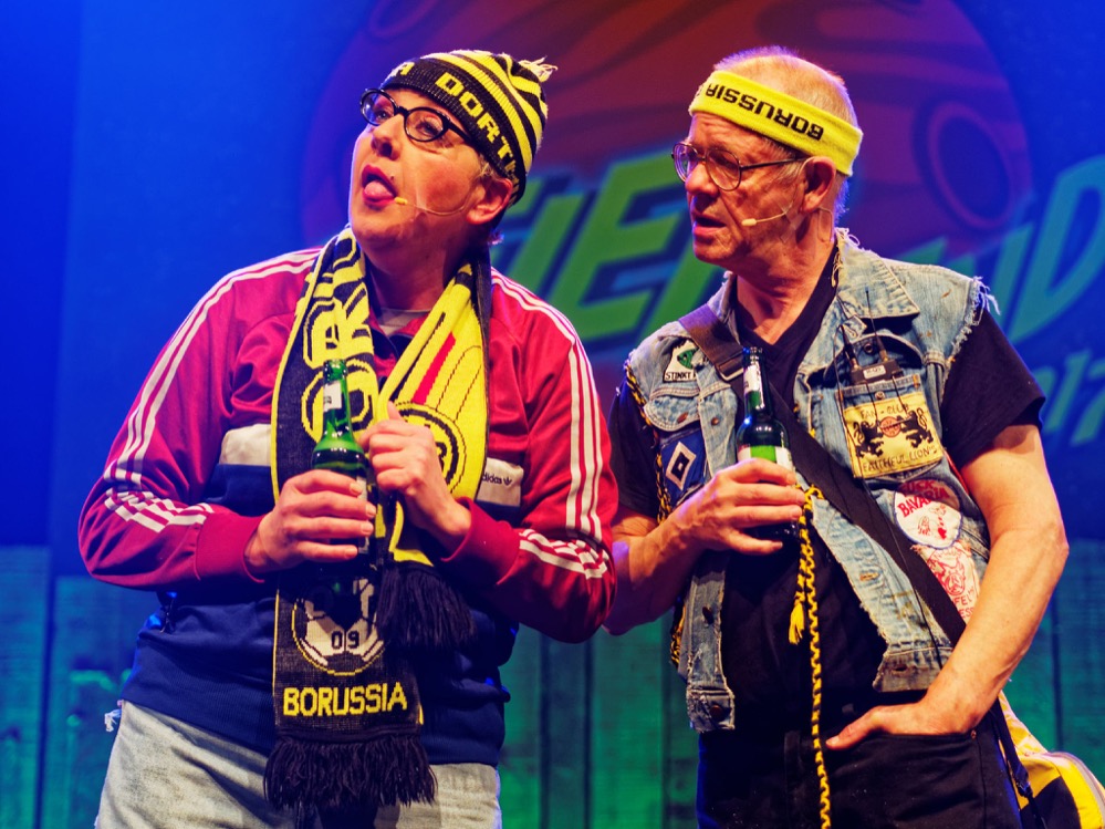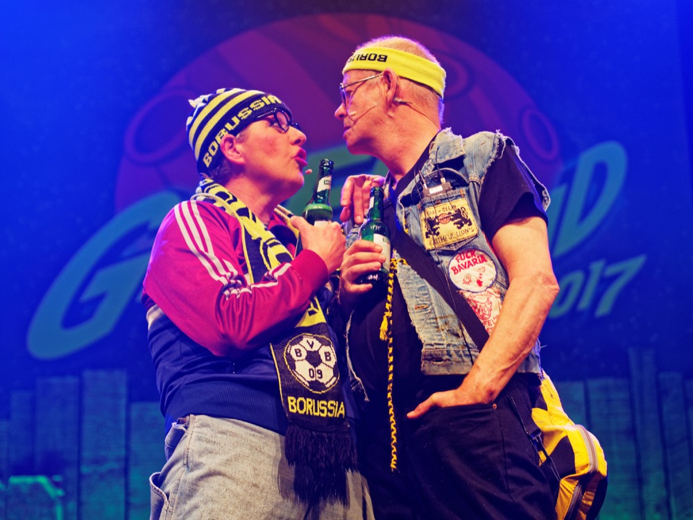 Dann bietet sich ein bunter Mix aus alten Bekannten wie den zwei von der Südtribüne („Nehm wa noch einen? Ja sicher!“) oder der wandelnden Raucherecke mit Gattenzwerch („Ich sach ma: Normaal!“) und frischen, aktuellen Themen.