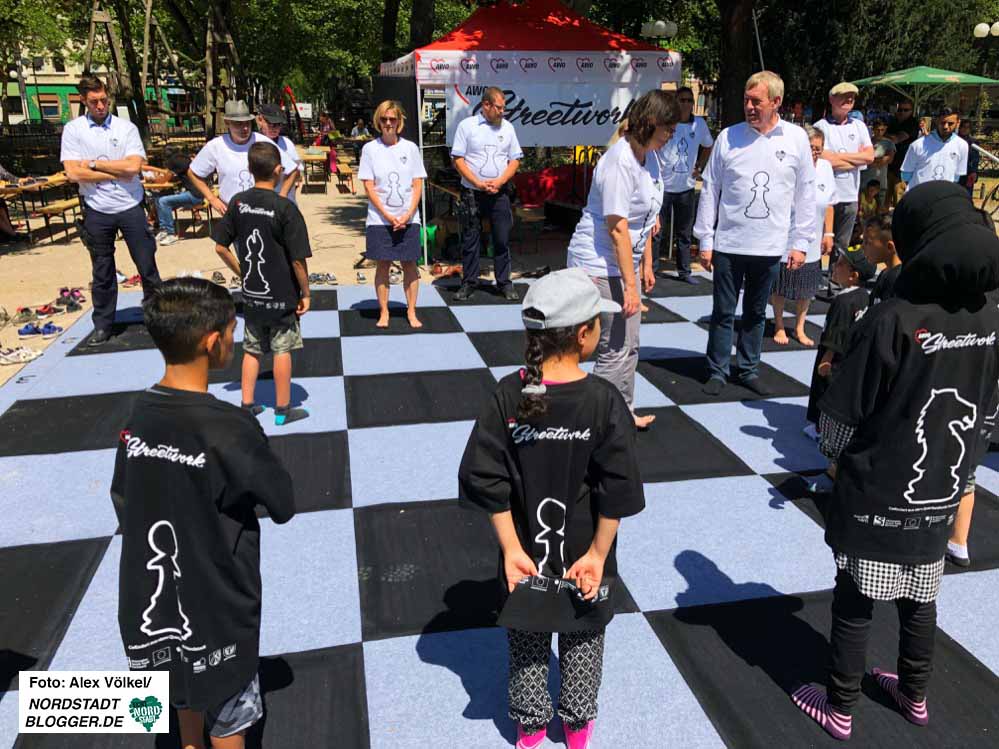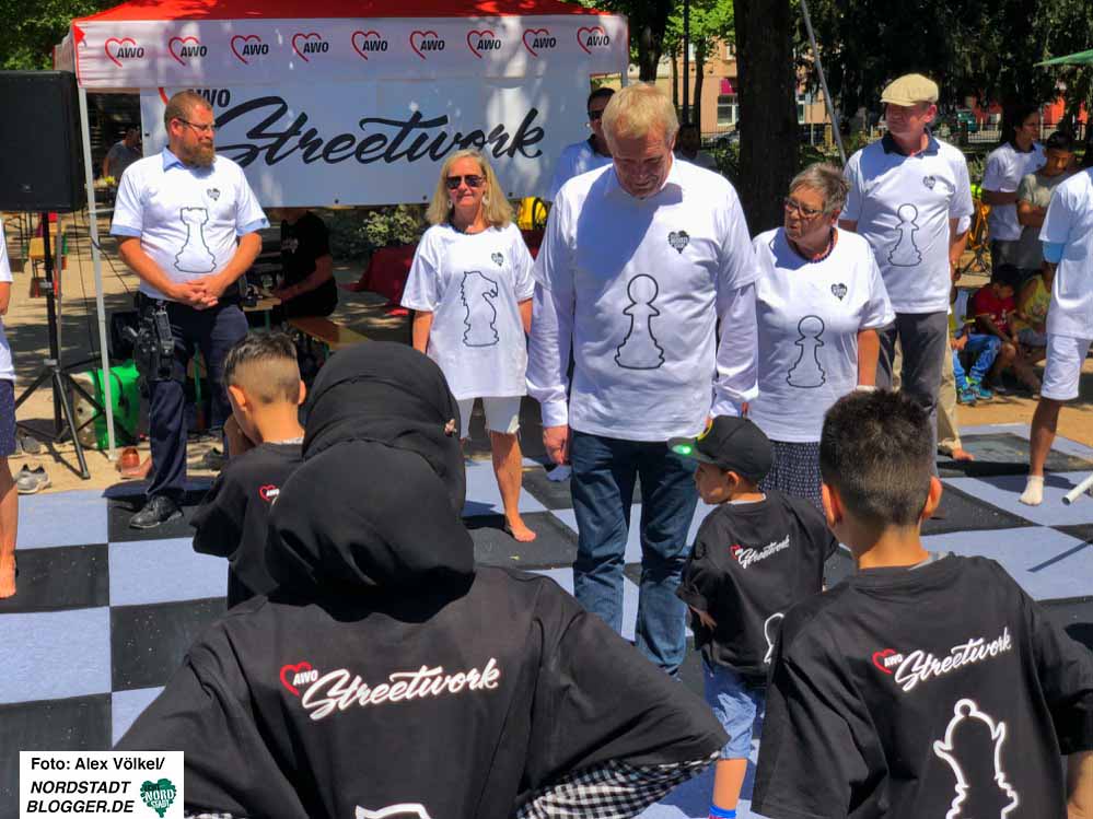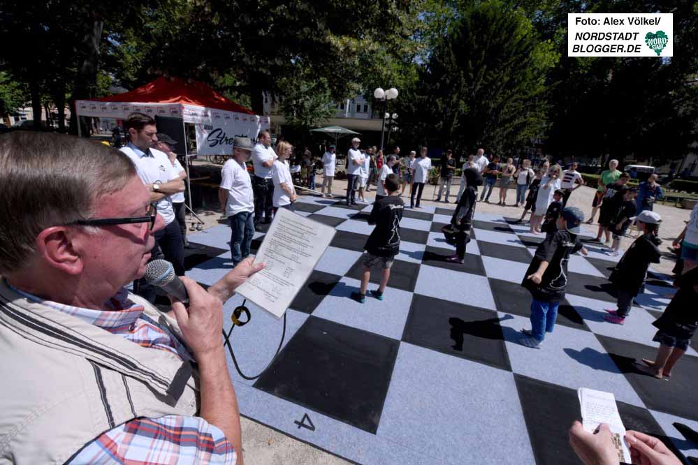 Am 07.07.2018 wurde die neue Großschachanlage auf dem Nordmarkt durch Bezirksbürgermeister Dr. Ludwig Jörder feierlich eröffnet. Aus Mitteln des Quartiersfonds Nordstadt konnte dieses Großschachspiel finanziert werden.