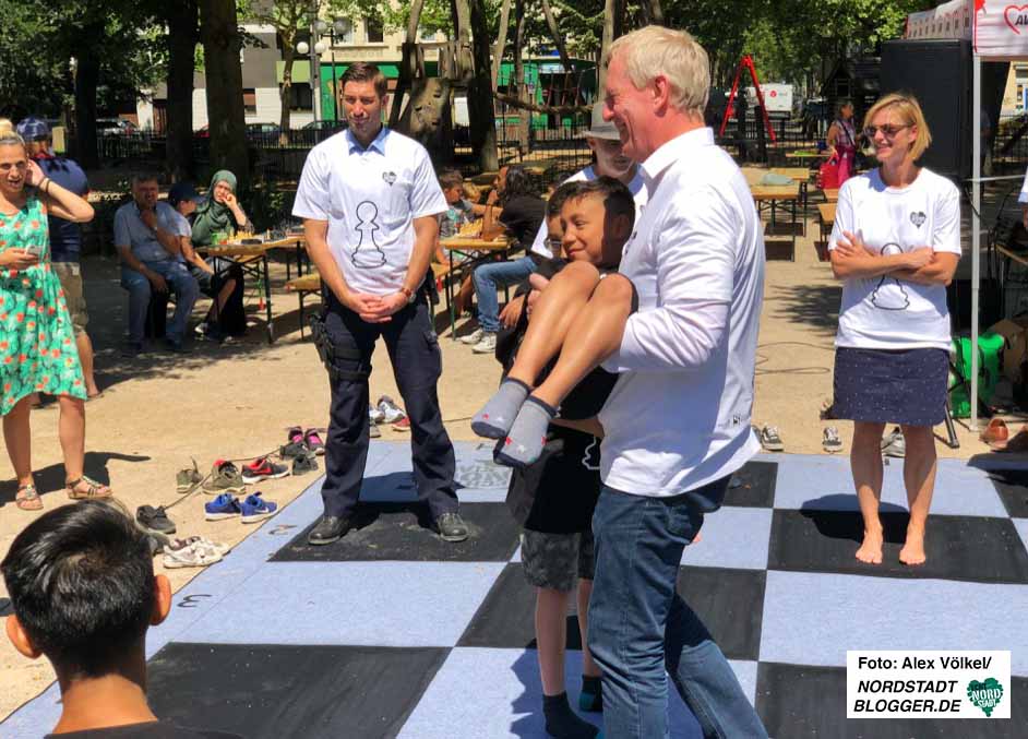 Eine „lebende Schachpartie“ mit prominenten Dortmundern und Dortmunderinnen (darunter Stadtdirektor Jörg Stüdemann, DKH-Leiter Levent Arslan, Bürgermeisterin Birgit Jörder und die AWo-Vorsitzende Gerda Kieninger), moderiert von Gerd Kolbe, sorgte für Begeisterung. Und ein Schachturnier für Groß und Klein bot ergänzend ausreichend Gelegenheit, sich dem schwarzweißen Königsspiel zu widmen.