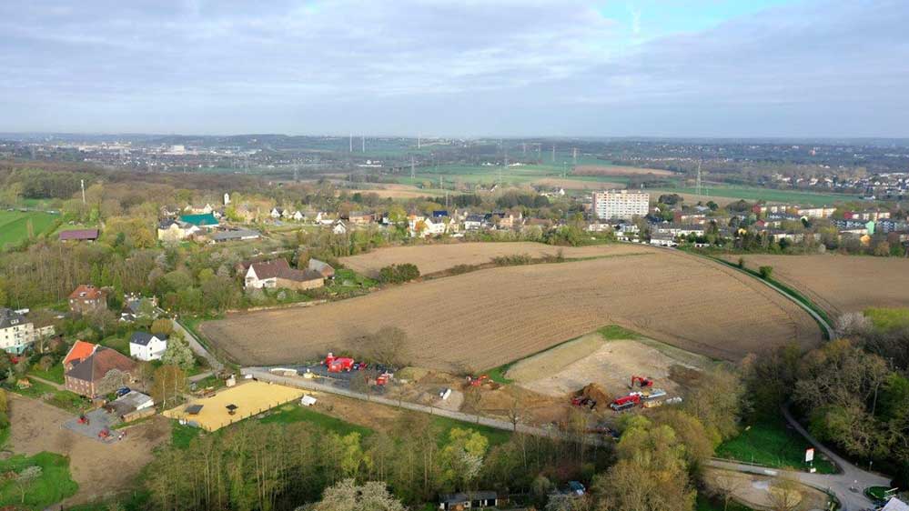 Von dem besonderen Bauwerk wird nach seiner Fertigstellung nichts mehr zu sehen sein – es wird unter dem Lehmboden verschwinden. Offen bleibt nur das in die Landschaft modellierte Regenrückhaltebecken, das als Überlauf bei Starkregen seinen Einsatz bekommt und ganzjährig eine ganz eigene Landschaft neben dem Kirchhörder Bach darstellt, die besonderen Pflanzen und Tieren ein Zuhause gibt und somit auch ökologisch höher zu bewerten ist als es die vorher landwirtschaftlich genutzte Fläche bis vor kurzem noch war.