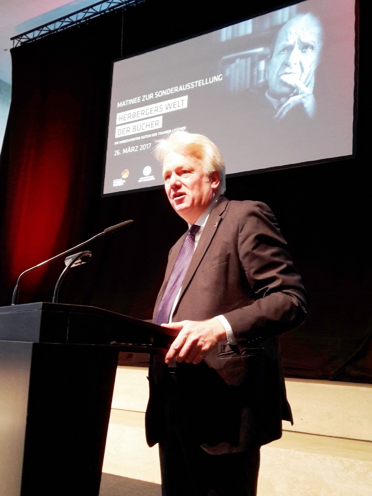 Neukirchner, Spiritus Rector der Sonderausstellung „Herbergers Welt der Bücher“ und Autor des gleichnamigen Begleitbuchs wurde bei der unterhaltsamen Podiumsdiskussion nicht müde darauf hinzuweisen, dass viele der bekannten Techniken und Fertigkeiten Herbergers wohl direkt auf diese immense Lektüre zurück zu führen waren.