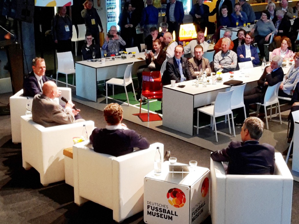 Ergänzt wurde die Gesprächsrunde durch Eulen Gehlenborg, Vorsitzenden der Stiftung Sepp Herberger, deren Aufgabe es ist soziale und karitative Projekte zu fördern und zu unterstützen. Dazu gehören Projekte zum Behindertenfußball, zur Resozialisierung von Strafgefangenen, die Förderung des Fußball-Nachwuchses in Schulen und Vereinen sowie des DFB-Sozialwerks.