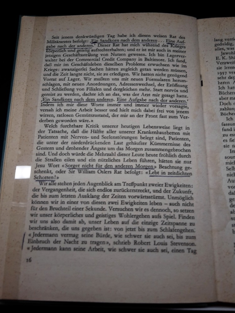 „Dabei ist mir aufgefallen, dass fast auf allen Seiten Stellen markiert sind, ganze Passagen unterstrichen und auch viele Anmerkungen hinein geschrieben wurden.“ Der „Chef“ hatte nicht nur viele Bücher im Regal, er hat sie offensichtlich alle sehr intensiv gelesen.