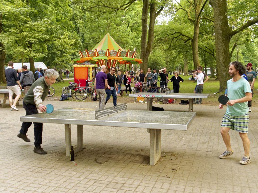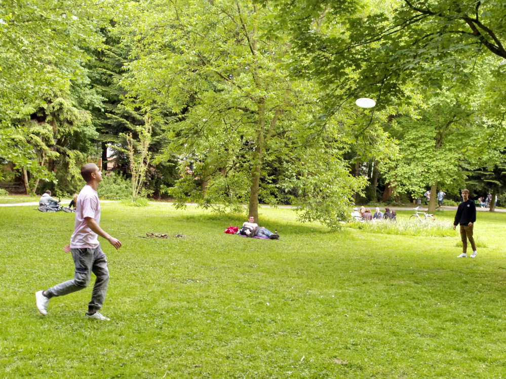 Dazu stand der Samstag als „Tag des Quartiers“ mit der Union Spielwiese ganz im Zeichen eines großen Familienfestes. Nicht nur rund um die Festwiese war der Park von Sonnenhungrigen in Beschlag genommen worden. Auf allen Wiesen nutzten PicknickerInnen und Freizeitsportler die Sonnenstunden.
