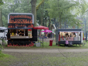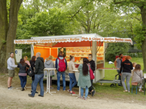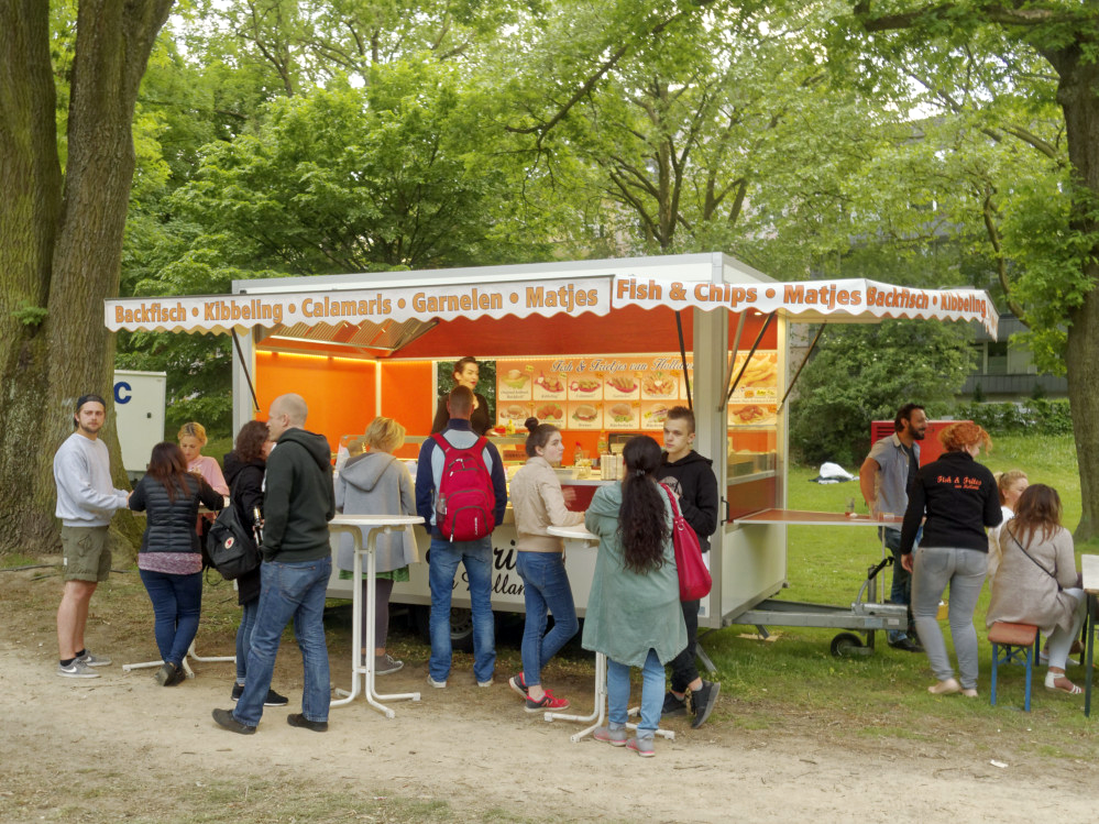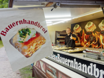 Für den kleinen und großen Hunger zwischendurch gab es ein abwechslungsreiches Angebot. Von Kirmesklassikern bis zu frischgebackenem Handbrot mit Füllung (absoluter Geheimtipp!) war alles zu sehen, zu riechen und zu schmecken. Der Donnerstag stand ganz im Zeichen des Vatertags, mit Bollerwagentour und Bierkastenrennen.