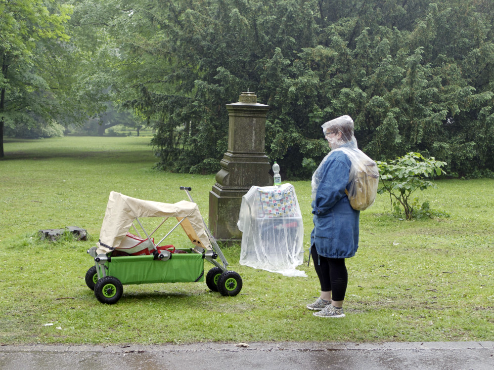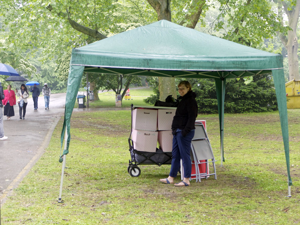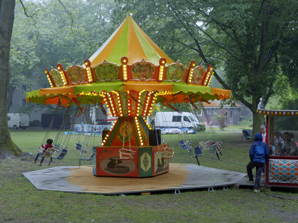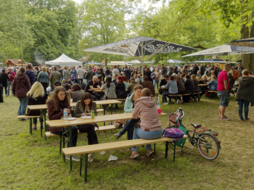 Der abschließende Trödelmarkt am Sonntag wurde dann leider ab mittags von starkem Regen gezeichnet. Die meisten Trödelstände brachen darauf ihre Zelte ab, so sie denn überhaupt welche hatten. Ein paar wenige Hartgesottene, VerkäuferInnen wie Gäste, konnten der besonderen Regenatmosphäre aber doch noch ihren Reiz abgewinnen und hielten bis zum Abend durch.