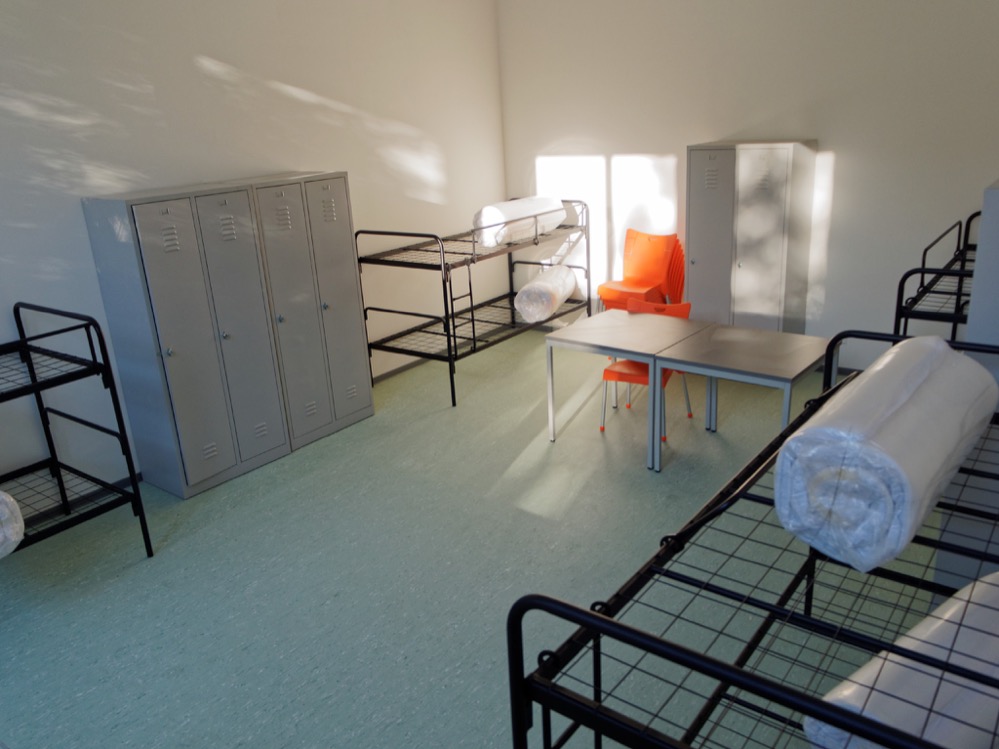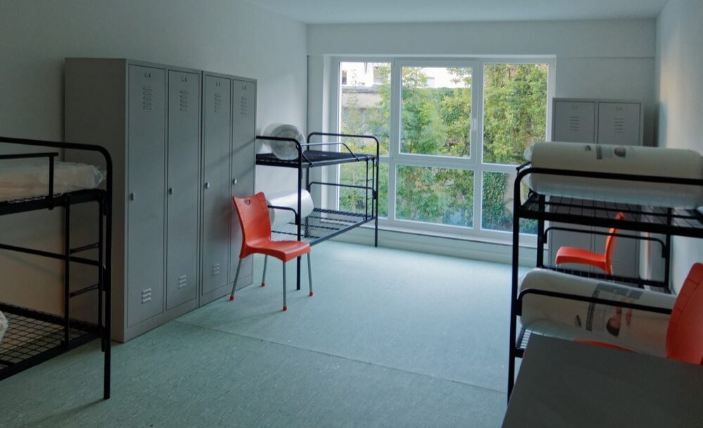 Flüchtlingsunterkunft Braunschweiger StraßeDas Haus in der Braunschweiger Straße 31-33 verfügt nun über eine maximale Kapazität von 172 Personen (Betten), vorwiegend in Sechs- und Acht-Bett-Zimmern. Es gibt auch ein Dreibett-Zimmer in einem kleineren Raum.