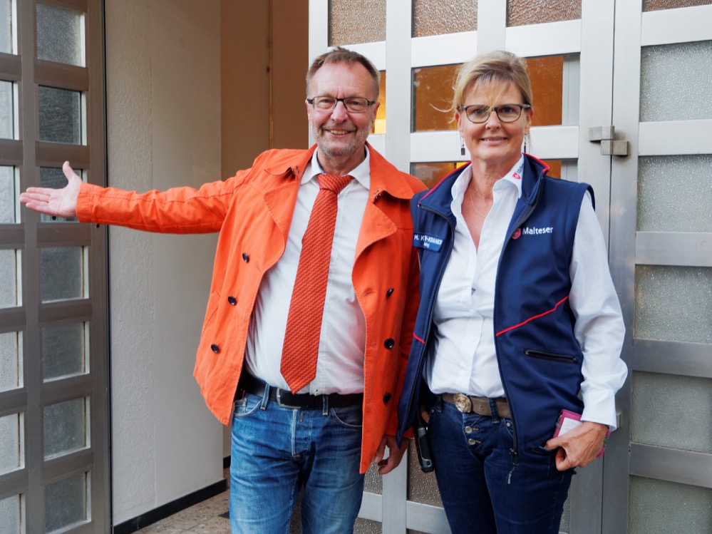 Einrichtungsleiterin Martina Köhler-Kranich (Malteser) und Ulrich Pichota (Sozialamt) luden zur Besichtigung.