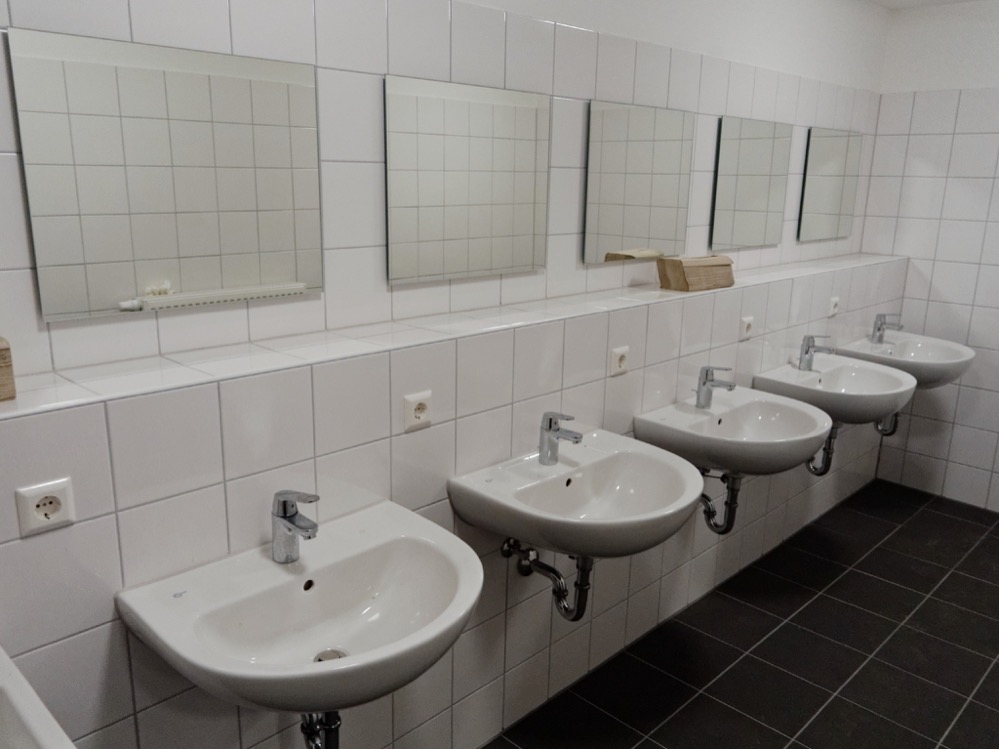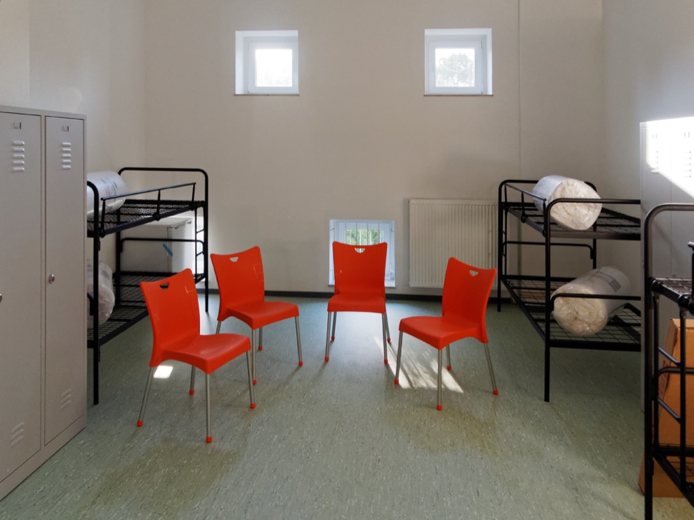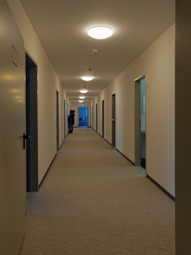 Die im Vergleich zu den Notlösungen (Zeltstadt, Traglufthalle) feste Bauweise des Objekts, die große Anzahl von Sanitärräumen, die abschließbaren Räume und Spinde schaffen eine im Vergleich deutlich intimere Atmosphäre als man das von einer so großen Unterbringung erwartet.