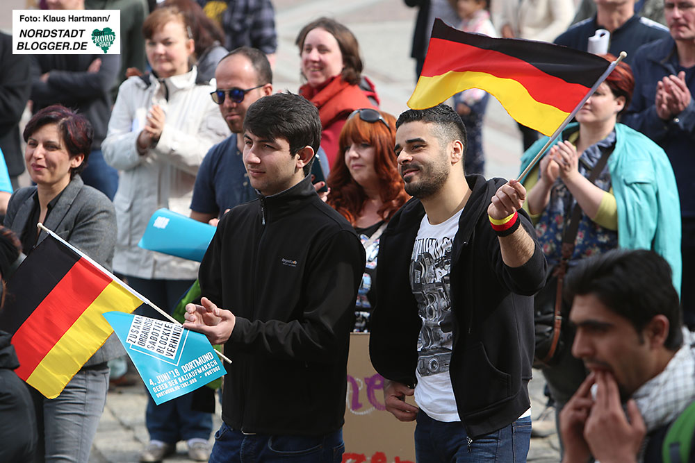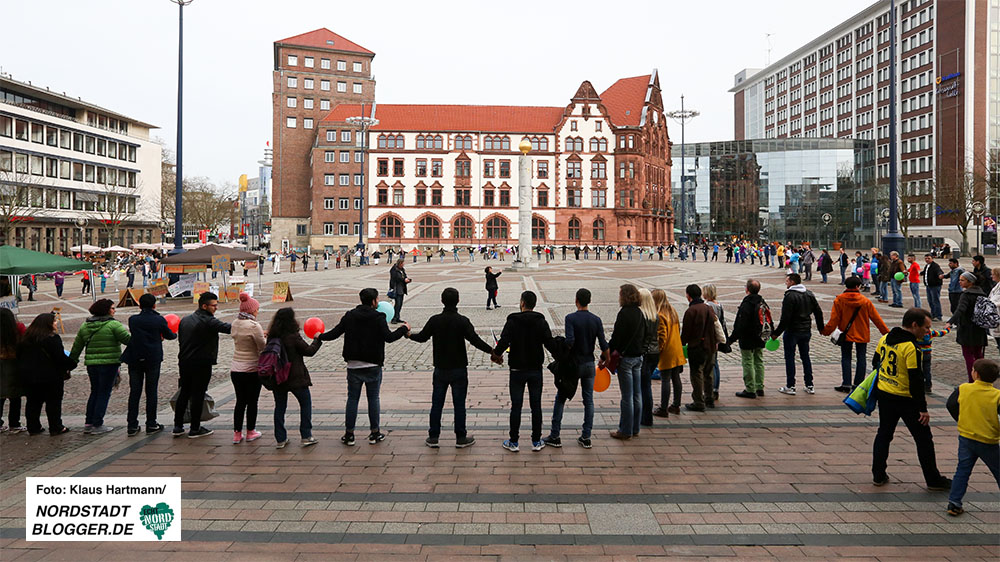 Was ursprünglich vom Verein „Train of Hope Dortmund e.V.“ als ein Flash-Mob angedacht war, hat sich zu einem veritablen Solidaritätskonzert entwickelt: Viele Menschen waren am Samstagnachmittag bei bestem Wetter zum Friedensplatz gekommen, um ein Zeichen gegen Rassismus und für Willkommenskultur mit Flüchtlingen zu setzen.