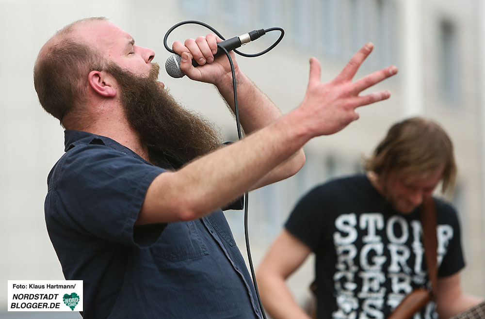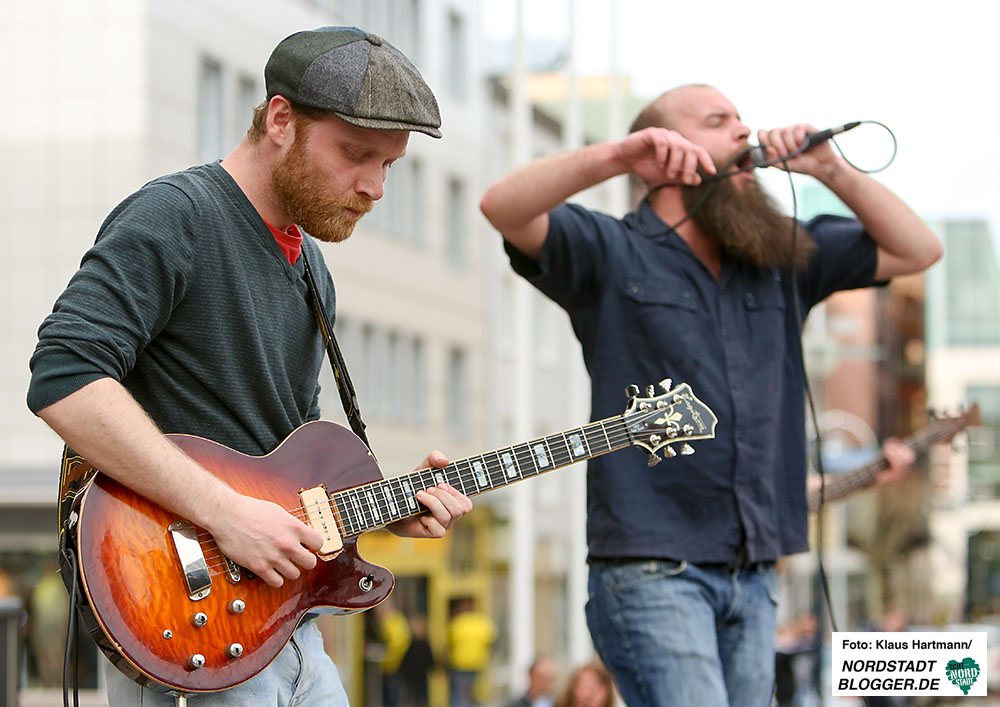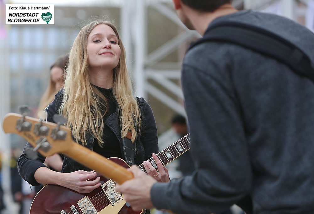 Um dieses Ansinnen zu unterstützen, haben auf dem Friedensplatz die drei Dortmunder Bands  – „Sara’s Wohnzimmer“, „Fitches“ und „Black Vulpine“ – gespielt und die Flüchtlingshelfer und Neubürger unterhalten.