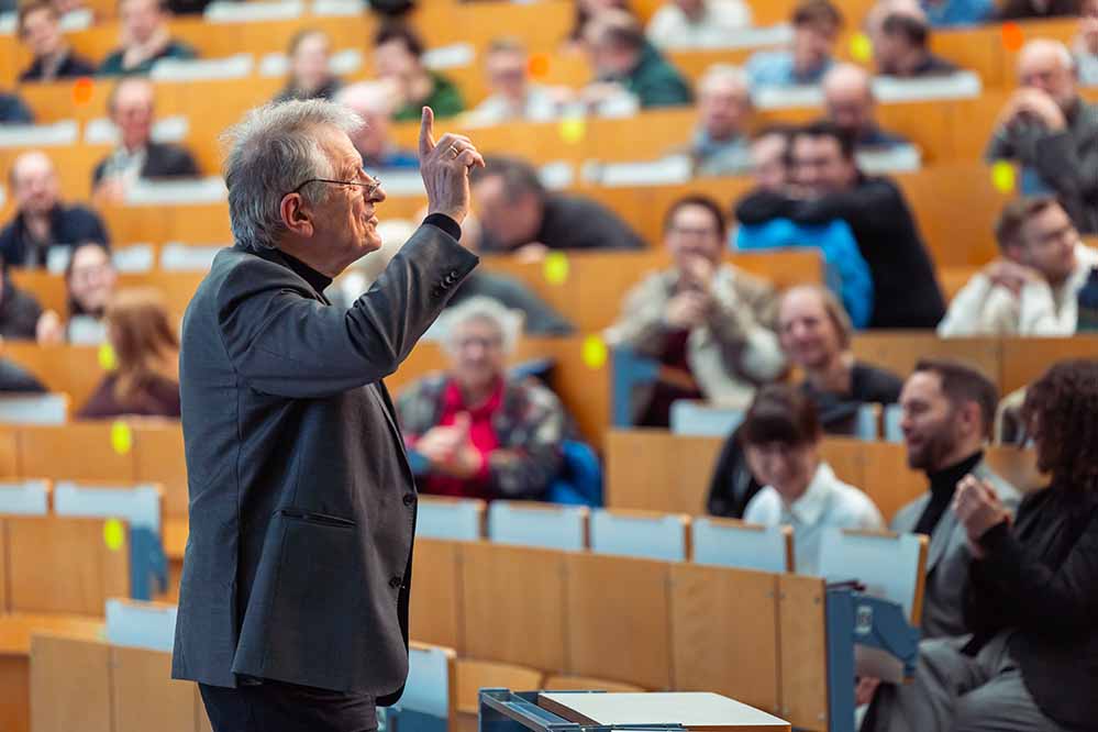 1985 hat Prof. Klaus von Klitzing den Nobelpreis für Physik für die Entdeckung des Quanten-Hall-Effekts erhalten. Welche Bedeutung seine Entdeckung für die Physik und auch für die neue Definition des Kilogramms im Jahr 2019 hatte, erzählte er am 21. Januar im gut besuchten Audimax der TU Dortmund. Sein unterhaltsamer Vortrag fand im Rahmen der Reihe „Initialzündung“ statt, die daran erinnert, dass einst Alfred Nobel auf der benachbarten Zeche Dorstfeld experimentierte.