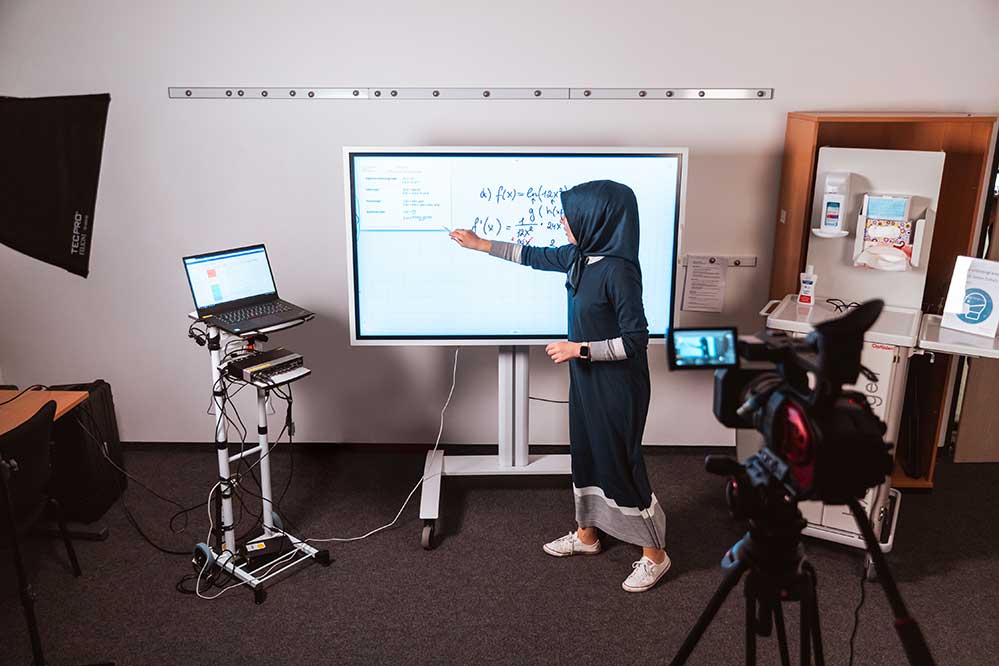 Aufgrund der Pandemie wurden im vergangenen Jahr die freiwilligen Mathematikkurse in den beteiligten Dortmunder Schulen einmal komplett umgekrempelt. Statt mit den Schüler*innen vor Ort im Klassenraum relevante Themen aus der Mathematik zu vertiefen und Lösungswege einzuüben, werden die Brückenkurse seitdem als rein digitales Angebot umgesetzt. In wöchentlichen 90-Minuten-Runden vermitteln die Tutor*innen aus der Fachhochschule Dortmund das Mathe-Wissen, das für ein WiMINT-Studium wichtig ist: komplett digital, nach Wissensstufen gegliedert, mit Mitbestimmung bei den Inhalten, in lockerer Atmosphäre, ohne Prüfungen und Tests und mit persönlichen Tipps und Erfahrungen direkt aus der Hochschule.