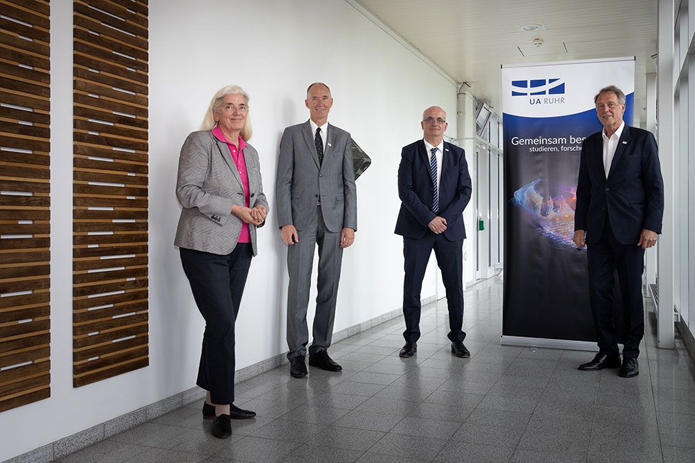Der Ausbau der internationalen Spitzenforschung der Universitätsallianz Ruhr (UA Ruhr) kann starten: Am 7. Juli 2021 unterzeichneten die Rektoren der TU Dortmund, der Ruhr-Universität Bochum und der Universität Duisburg-Essen (UDE) im Beisein von Wissenschaftsministerin Isabel Pfeiffer-Poensgen einen Kooperationsvertrag zur Gründung der Research Alliance Ruhr. Damit können die vier Research Center und das College nun beginnen, internationale Spitzenwissenschaftlerinnen und -wissenschaftler für ihre zukunftsweisenden Forschungsvorhaben zu gewinnen. Für die Aufbauphase stellt die Landesregierung hierfür bis 2024 aus Mitteln der Ruhr-Konferenz bis zu 75 Millionen Euro zur Verfügung.