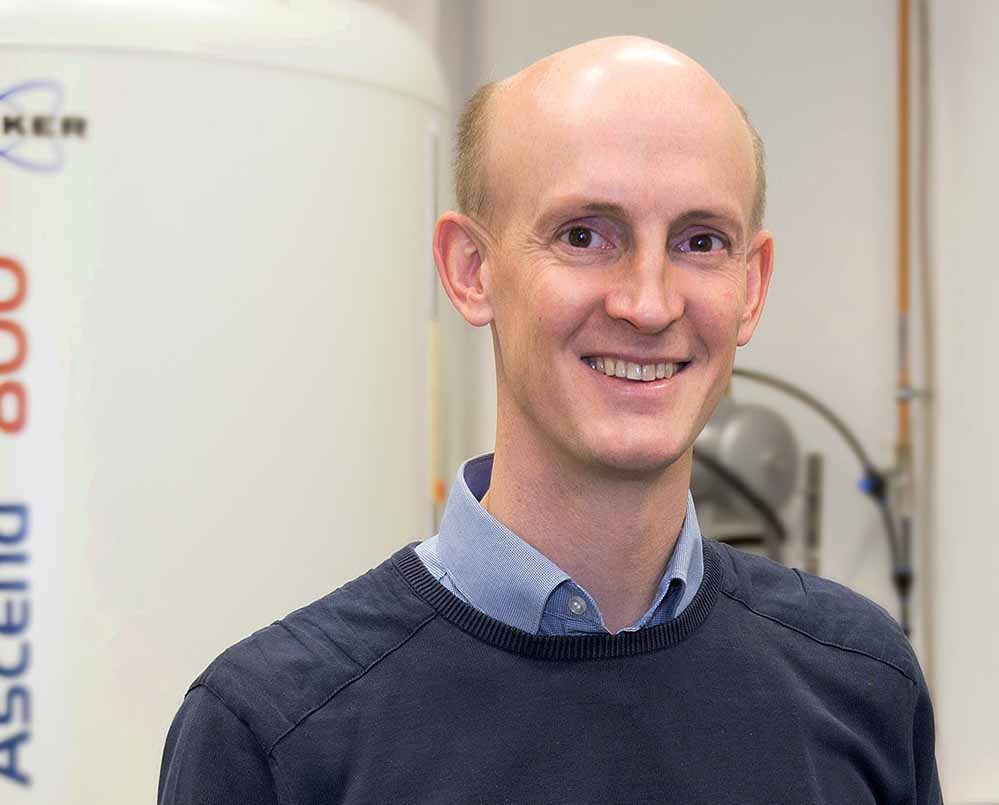 Prof. Rasmus Linser forscht an der TU Dortmund zur biomolekularen NMR-Spektroskopie: NMR steht für Nuclear Magnetic Resonance, also magnetische Kernresonanz. Mit dieser Technik können die Funktionen unterschiedlicher molekularer Bauteile einer Zelle im Detail untersucht werden. Insbesondere für die Klasse der Proteine kann mit dieser Technik die atomar aufgelöste, dreidimensionale Struktur, die Beweglichkeit der einzelnen Atome innerhalb des Moleküls sowie die Interaktionen der Proteine mit anderen Molekülen genau erfasst werden. Diese Informationen tragen dazu bei, dass Forscher*innen die Funktionen von Proteinen besser verstehen können – und zwar sowohl in der gesunden Zelle als auch bei Fehlfunktionen und potenziellen pharmazeutischen Interventionen.
