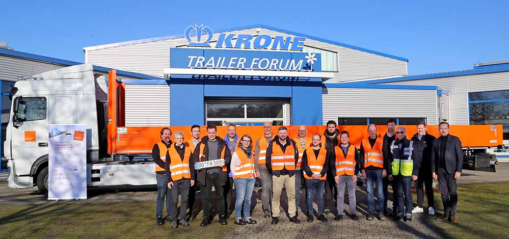 Das Projekt „CargoTrailSense_AI“ hat einen weiteren Meilenstein erreicht: Für die Forschung zur Sicherheit von Lkw im Straßenverkehr hat die Fachhochschule Dortmund einen 13,6 Meter langen Auflieger der Krone Nutzfahrzeug Gruppe am Werk im niedersächsischen Werlte abgeholt.