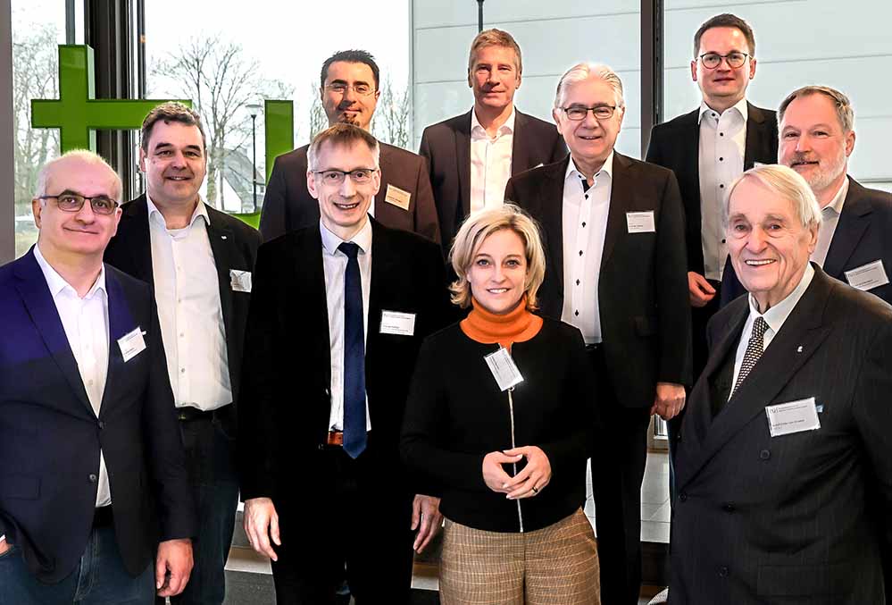 Bild: Kamen zu Eröffnung des Kompetenzzentrums für digitale Produktionstechnologien im Rudolf-Chaudoire-Pavillon der TU Dortmund zusammen (v.l.): Prof. Manfred Bayer (Rektor der TU Dortmund), Prof. Norbert Kockmann (Apparate Design – Wissenschaftlicher Beirat), Prof. Andreas Hoffjan (Unternehmensrechnung und Controlling – Wissenschaftlicher Beirat), Alessandro Selvaggio (Geschäftsführer des Kompetenzzentrums), Wolfgang Heidrich (Aluminium Deutschland – Verbandsbeirat), Heike Marzen (Wirtschaftsförderung Dortmund – Verbandsbeirat), Prof. A. Erman Tekkaya (Institut für Umformtechnik und Leichtbau – Wissenschaftlicher Beirat), Dr. Lukas Kwiatkowski (Otto Fuchs – Industriebeirat), Adolf Edler von Graeve (KIST Deutschland – Industriebeirat) und Frank Grützenbach (Wirtschaftsförderung Dortmund ‑ Verbandsbeirat).