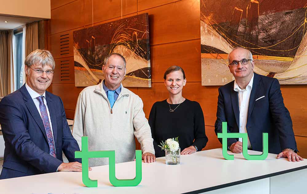 Bild (v.r.): TU-Rektor Prof. Manfred Bayer und Prorektorin Internationales Prof. Tessa Flatten begrüßten Prof. Gad Barzilai von der University of Haifa, Israel, und Prof. Michael Quante von der Universität Münster beim Gambrinus-Forum.