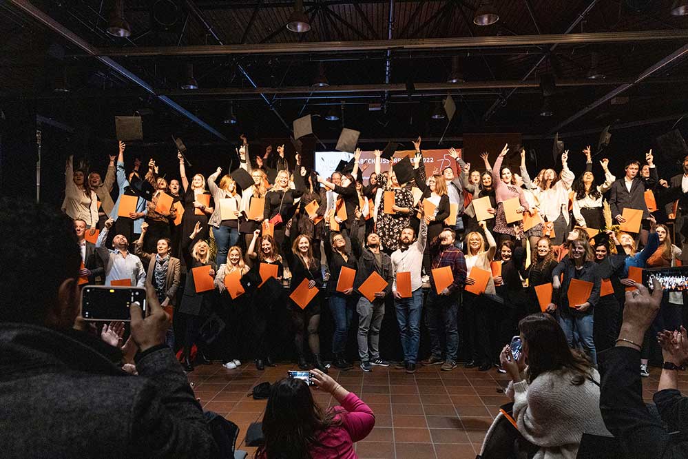 Bildzeile: Etwa 130 Absolvent*innen aus den vergangenen vier Jahren konnten ihren Studienabschluss vor Ort feiern.