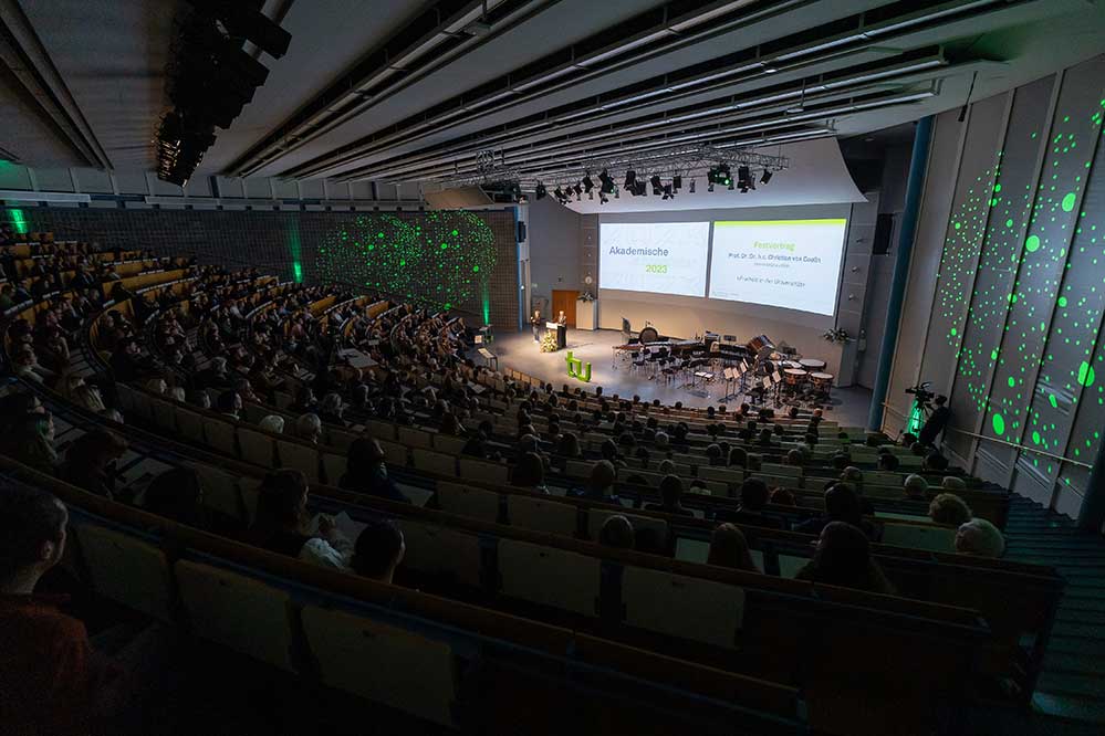 Im Dezember 2023 hieß Rektor Prof. Manfred Bayer rund 700 Gäste zur Akademischen Jahresfeier im Audimax der TU Dortmund willkommen. Im Rahmen der festlichen Veranstaltung wurden wieder zahlreiche Auszeichnungen vergeben, darunter Preise für herausragende Abschlussarbeiten und Promotionen sowie Anerkennungen für besonderes Engagement in Lehre und Forschung.