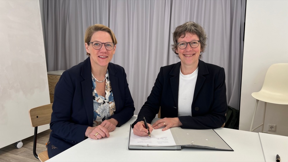 Auf dem Bild zusehen von links: Prof. Wiebke Möhring, Prorektorin Studium der TU Dortmund, und Prof. Susanne Staude, Präsidentin der Hochschule Ruhr West. Foto: HRW Intern