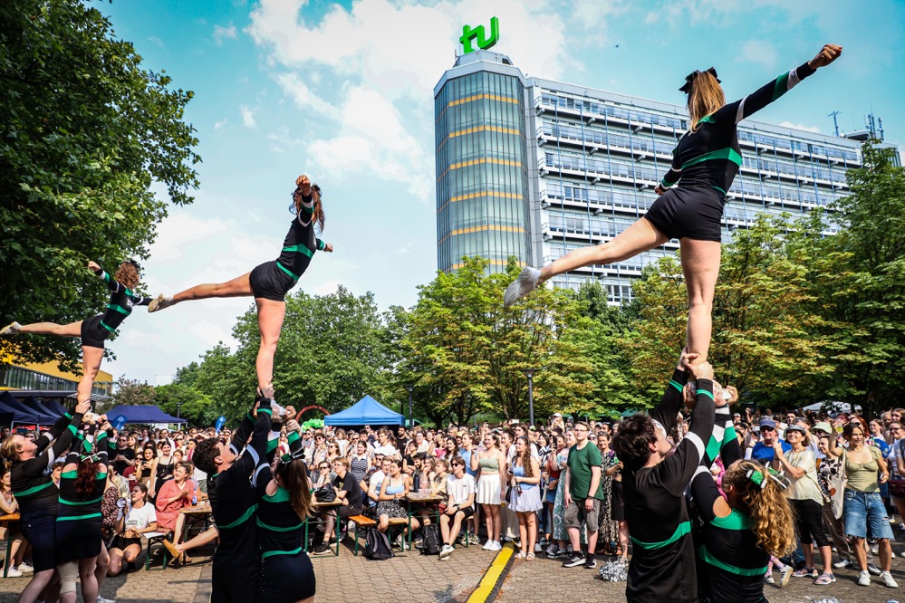 Auf den Bühnen am Martin-Schmeißer-Platz und vor der Emil-Figge-Straße 50 sowie an kleineren Stationen auf dem Campus sorgten Livebands, TU-Ensembles und DJs für Partystimmung. Die Tanzgruppen und das Cheerleading-Team der TU Dortmund begeisterten das Publikum mit ihren Stunts und verbreiteten Tanzfieber. An seiner Grill-Station verschenkte das Studierendenwerk die beliebten 3.000 Gratis-Bratwürste und 2.000 Gemüse-Schnitzel. Internationale Studierende boten an ihren Ständen zahlreiche Speisen aus ihren Heimatländern an, vereint unter dem Motto „Wir sind TU“.