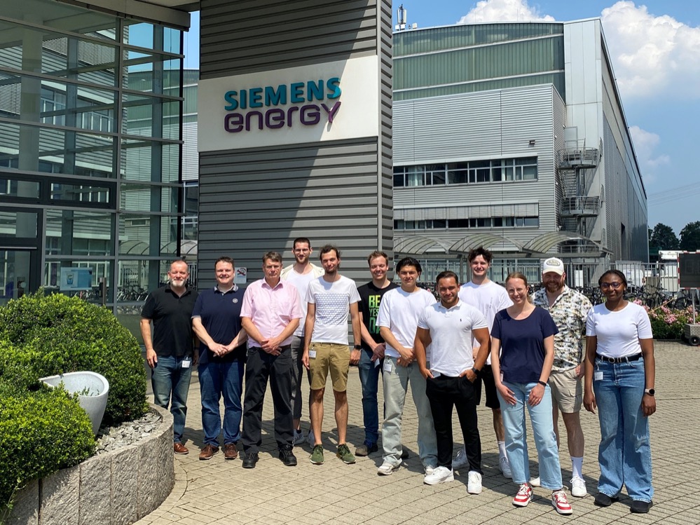 Begrüßt wurden die Teilnehmenden der Fachhochschule Dortmund von Dr. Friedhelm Pohlmann, bei Siemens Energy als Global Manager verantwortlich für die Bereiche High Voltage Engineering & Materials Generator Engineering. Er stellte den Gästen das Unternehmen vor und führte sie danach zu mehreren Stationen auf dem Werksgelände. Auch ein gemeinsames Mittagessen stand auf dem Programm.