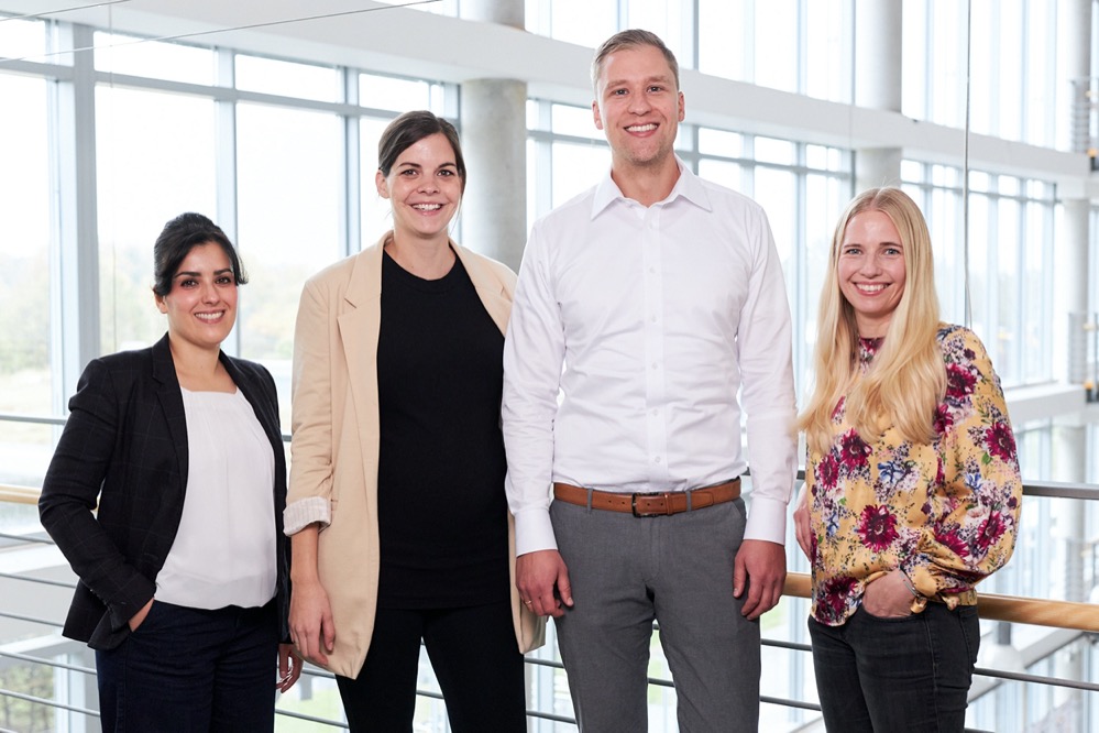 Auf dem Bild zusehen von links: Von links: Prof. Dr. Hanaa Ryari, Prof. Dr. Lena Klimke, Prof. Dr. Fabian Kubik und Prof. Dr. Sabrina Scheidler. Foto: FH Dortmund / Florian Freimuth