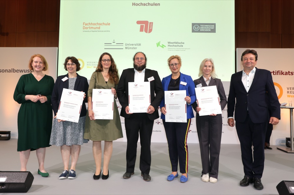 Die Fachhochschule Dortmund ist erneut für ihre familiengerechten Arbeits- und Studienbedingungen geehrt worden. Anlass gab die 26. Zertifikatsverleihung der berufundfamilie Service GmbH in Berlin. Bereits seit 2008 nutzt die FH das Audit familiengerechte Hochschule als strategisches Management-Instrument, das einen nachhaltigen Prozess der Vereinbarkeit anstößt und steuert.