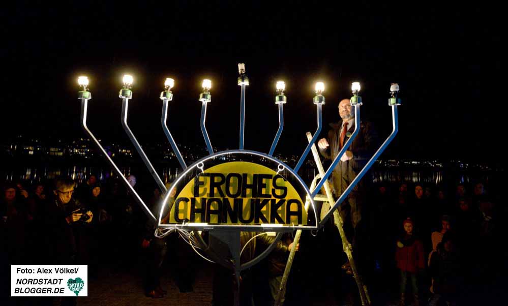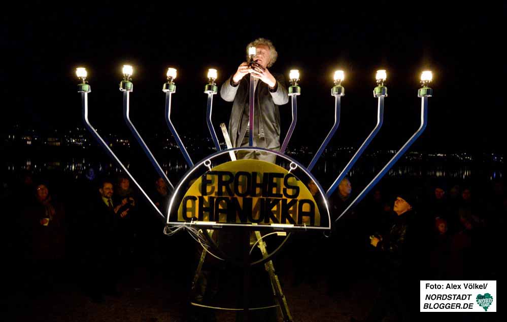 Es ist ein Zeichen des Selbstbewusstseins und der Freundschaft mit anderen Religionen – die jüdische Chanukka-Feier auf der Kulturinsel am Phoenixsee.
