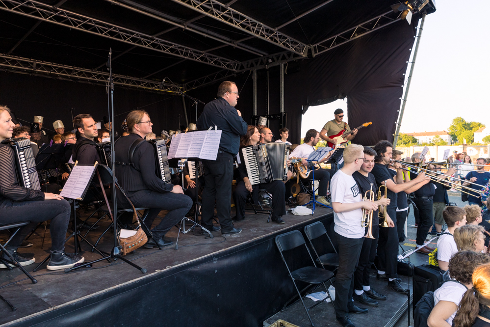Ihren Abschluss fand die Aufführung mit einem Finale am Umschlagplatz an der Speicherstraße. Hier kamen alle Beteiligten noch einmal zusammen. Im Anschluss an die eigentliche Aufführung spielte 909 Schneider noch bis um Mitternacht ein DJ-Set.